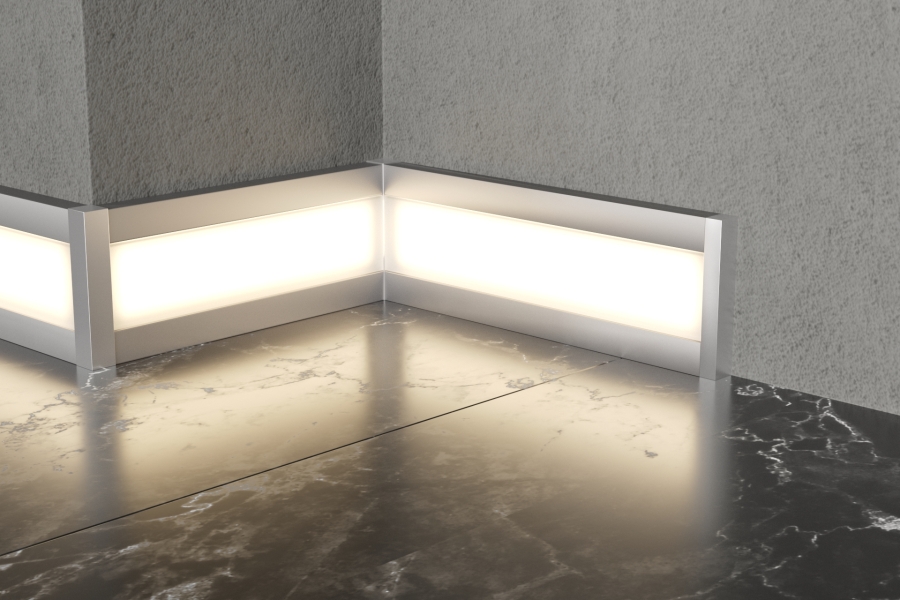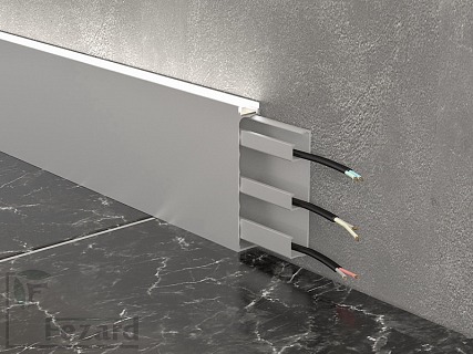 Плинтус алюминиевый анодированный со светодиодной подсветкой также допускает возможность размещения кабеля.