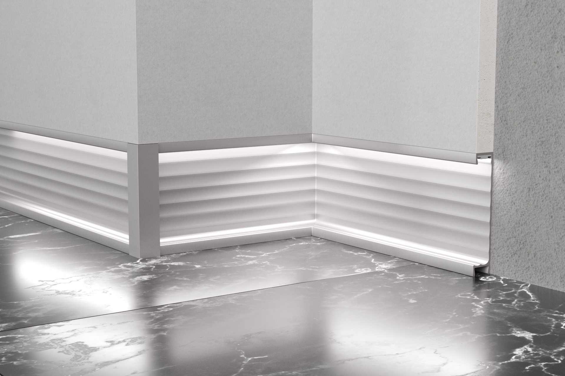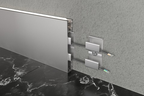 Плинтус алюминиевый анодированный со светодиодной подсветкой также допускает возможность размещения кабеля.