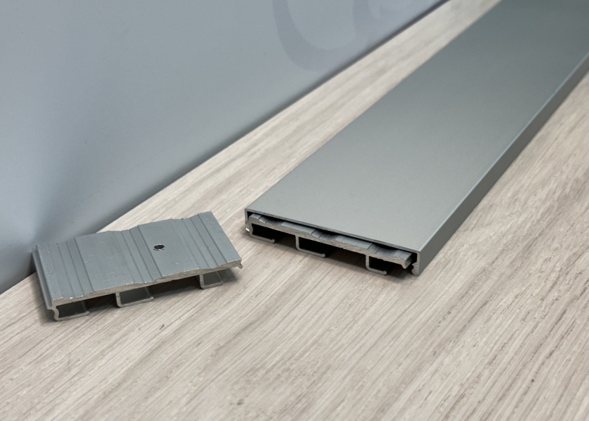 Плинтус алюминиевый анодированный плоский, без кабель канала. Размеры 60х12, 80х12 и 100х12 мм. Длина плинтуса - 2.5 м.